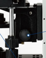 | 反射机架,低手位粗微同轴调焦机构,粗调行程28mm,微调精度0.002mm。带有防止下滑的调节松紧装置和随机上限位装置。带平台位置上下调节机构,最大样品高度78mm | |